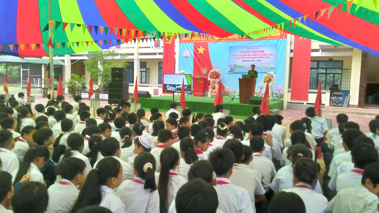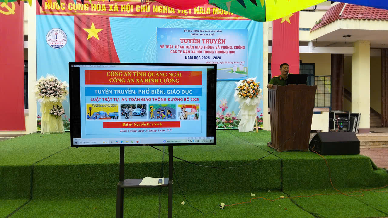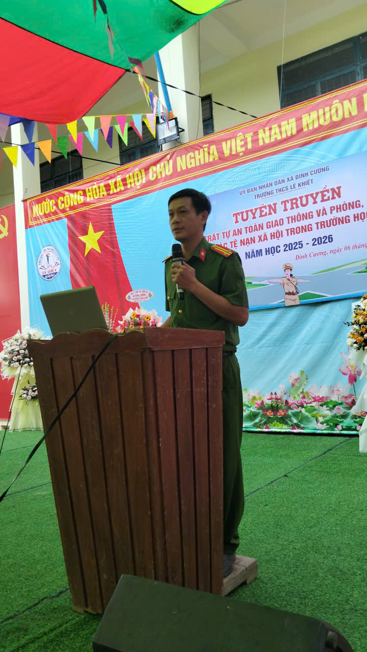 CÔNG AN XÃ ĐÌNH CƯƠNG TUYÊN TRUYỀN AN TOÀN GIAO THÔNG VÀ PHÒNG, CHỐNG TỆ NẠN XÃ HỘI TẠI TRƯỜNG THCS LÊ KHIẾT NĂM HỌC 2025-2026