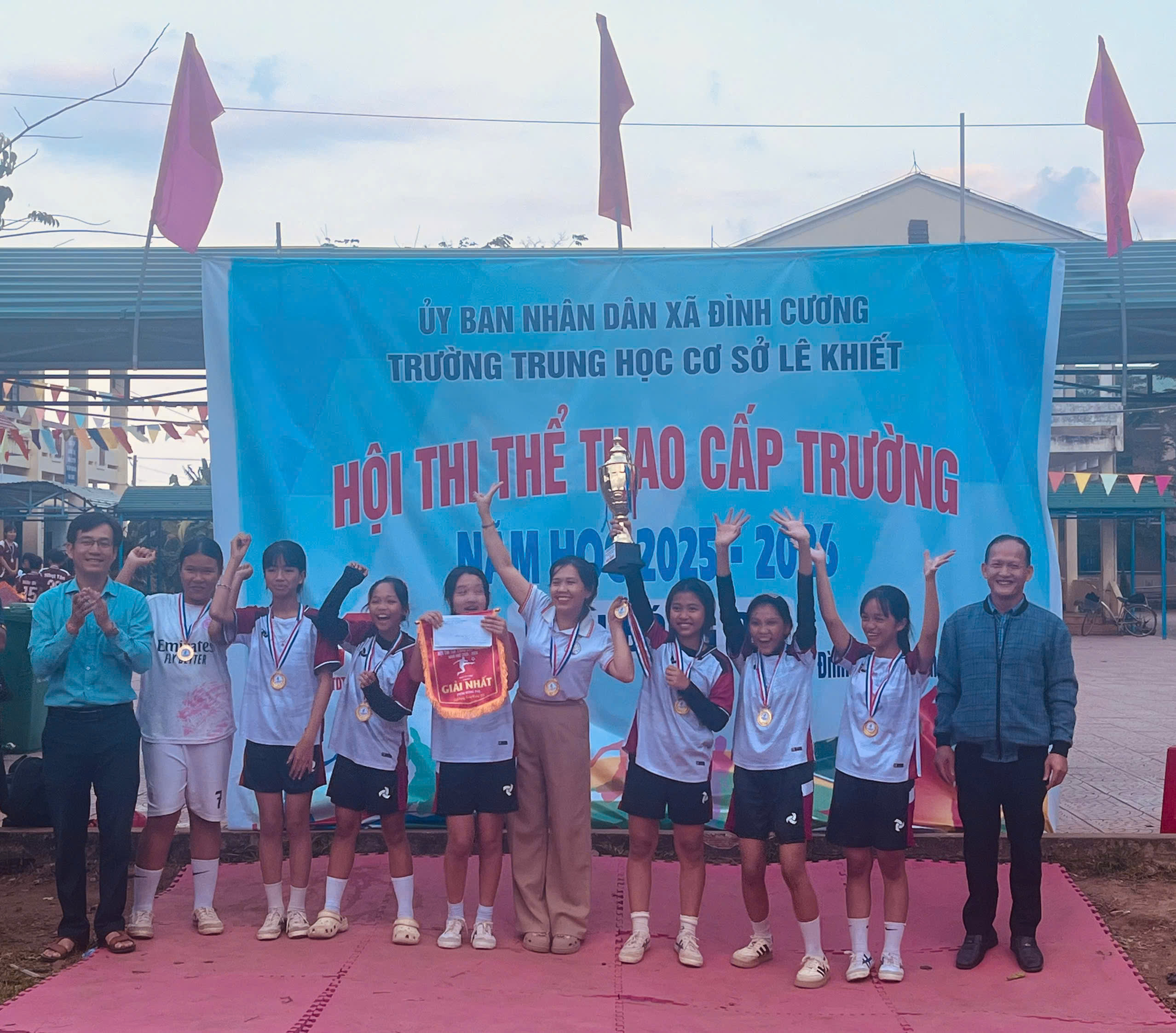 Sau thời gian thi đấu sôi nổi, giải bóng đá đã diễn ra thành công tốt đẹp. Ban Tổ chức đã tổng kết và trao giải cho các đội đạt thành tích cao. Cụ thể, ở nội dung nam, giải Nhất thuộc về các đội lớp 8C và 7A; giải Nhì thuộc về các đội lớp 9B và 7B; giải Ba được trao cho các đội lớp 9C và 7C. Ở nội dung nữ, giải Nhất thuộc về các đội lớp 9B và 7A; giải Nhì thuộc về các đội lớp 9A và 6A; giải Ba thuộc về các đội lớp 9C và 7C. Ban Tổ chức đã trao các giải thưởng cho những tập thể và cá nhân có thành tích xuất sắc, đồng thời ghi nhận, biểu dương tinh thần tham gia tích cực của tất cả các đội bóng. Kết quả của giải đấu không chỉ được đo bằng thứ hạng, mà còn thể hiện qua tinh thần thể thao cao thượng và những giá trị giáo dục mà hoạt động mang lại.